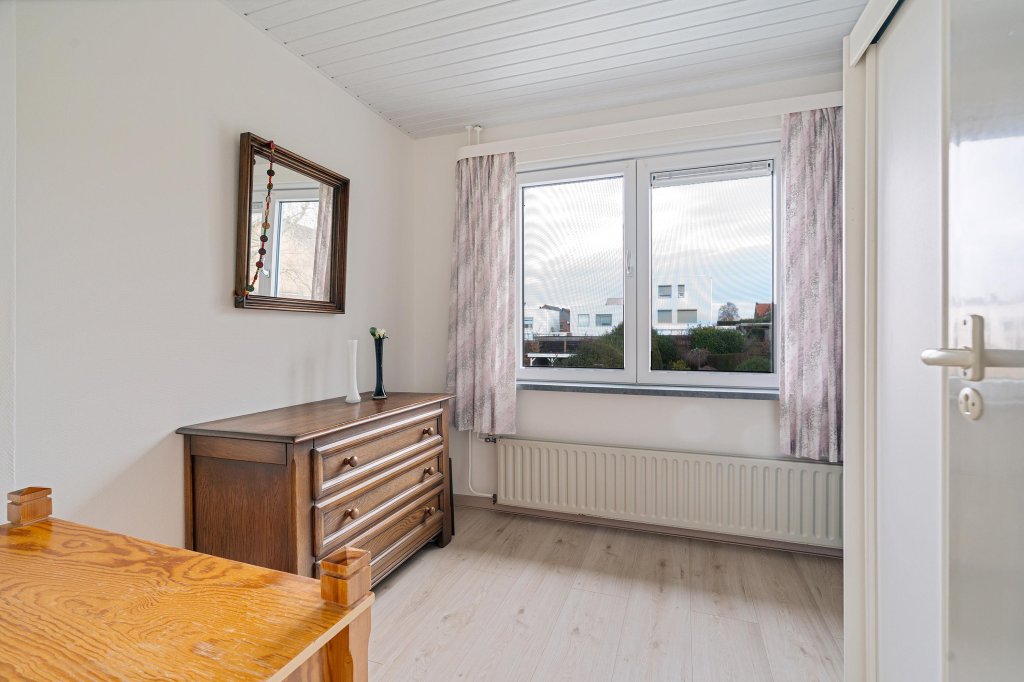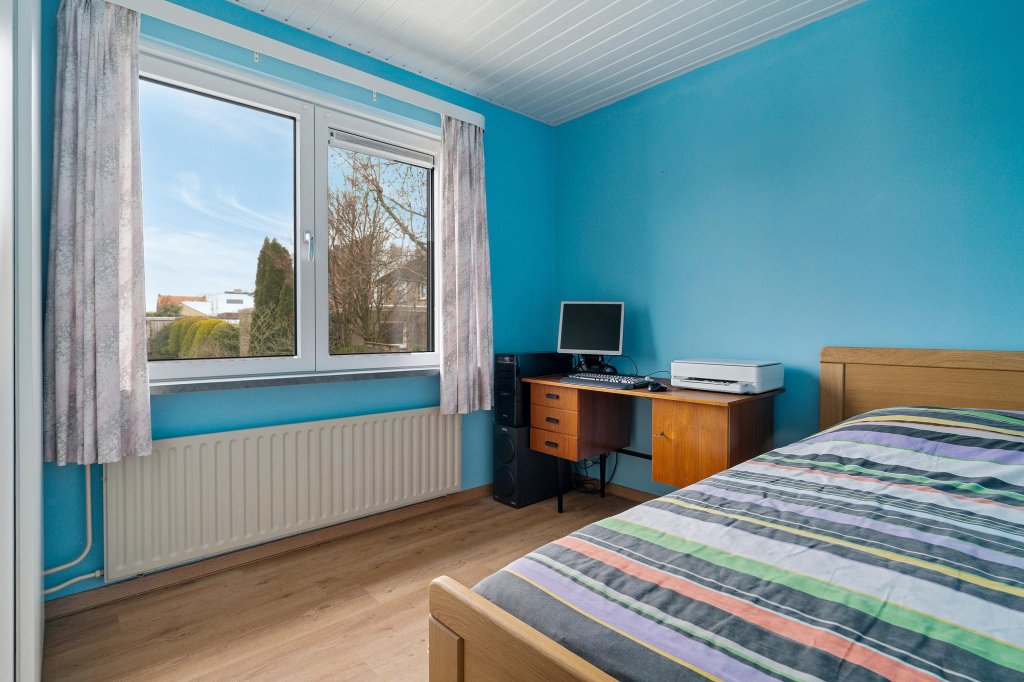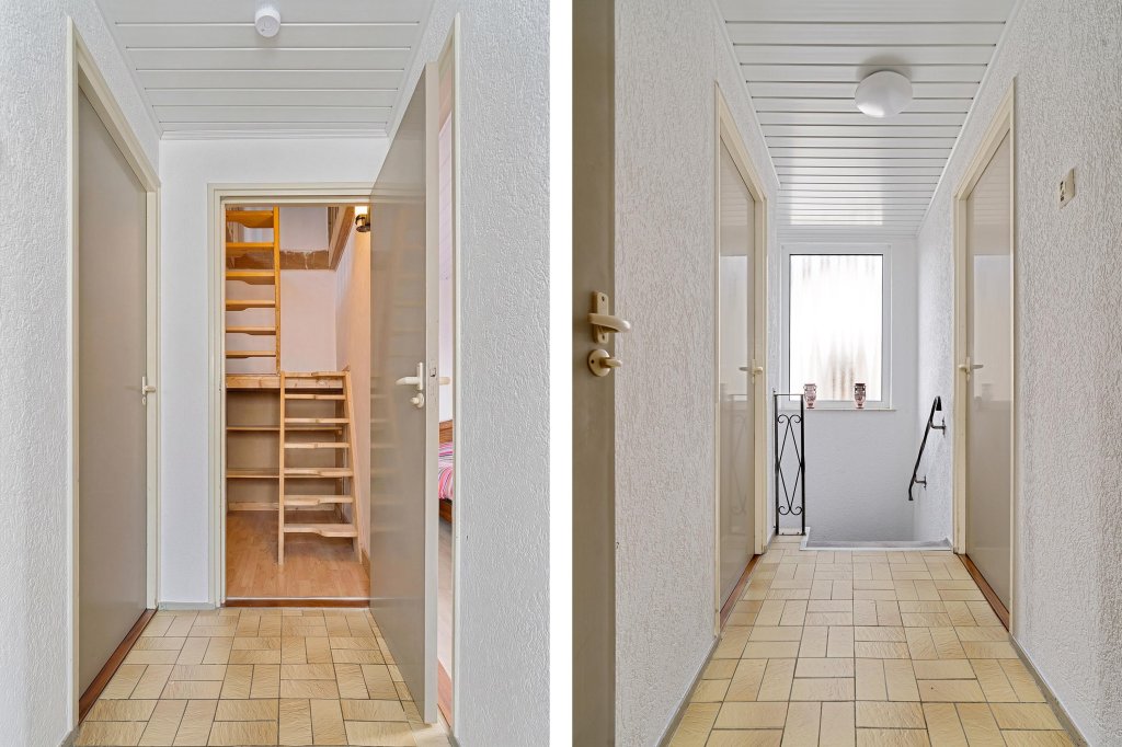 De overloop geeft toegang tot drie slaapkamers, alle voorzien van een laminaatvloer. Eveneens is de zolderverdieping via een vaste trap op de overloop bereikbaar.
